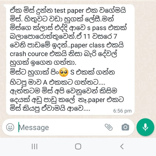 – ඔබගේ නම, ශ්රේණිය, පාසල සඳහන් කර 077 4045614 ට WhatsApp පණිවිඩයක් එවීමෙන් සියලූම විස්තර ඔබට එවනු ඇත.
