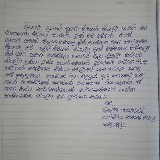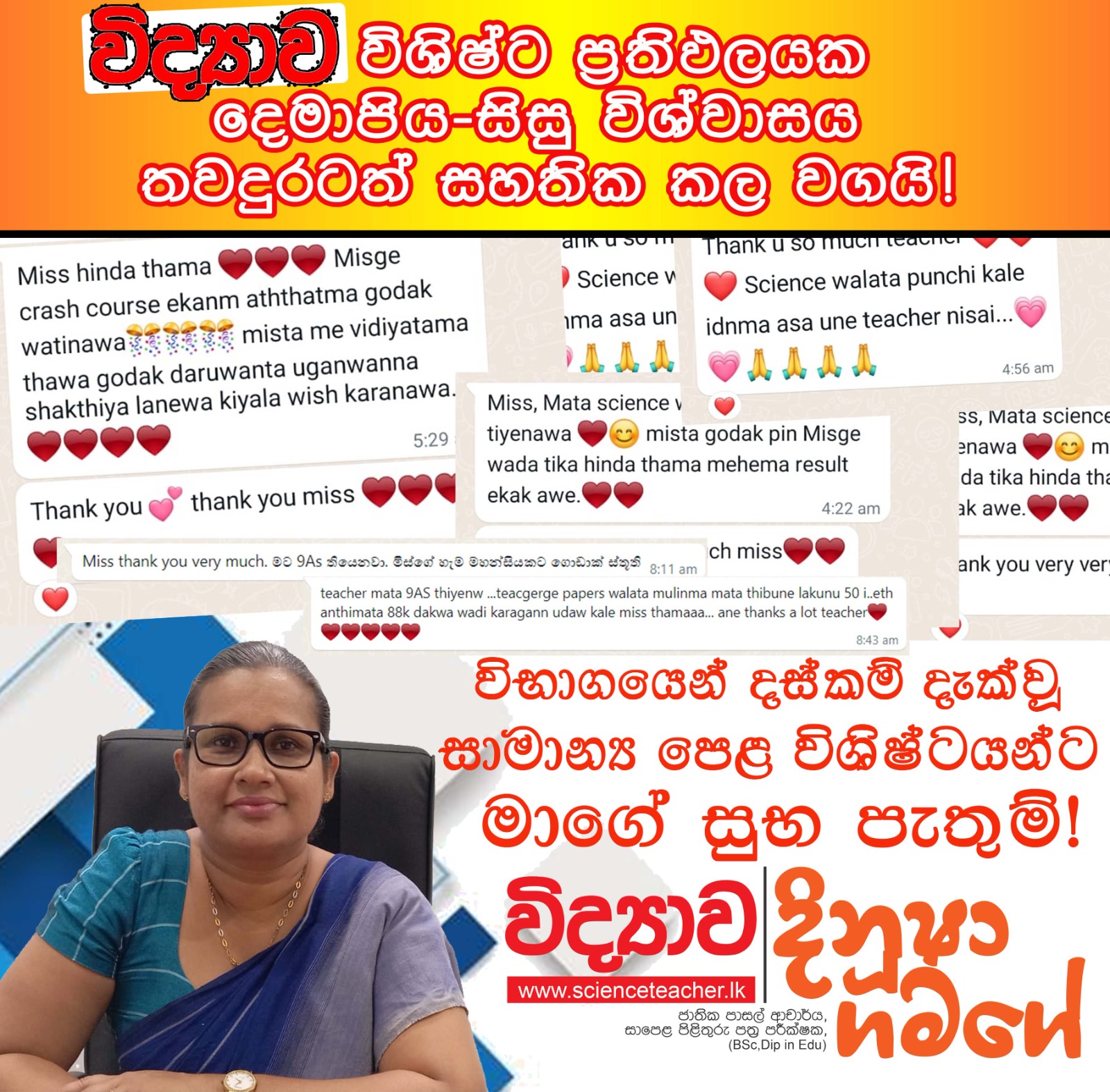 – සහභාගීවන සියලූම සිසුන් ඉහළම සාමාර්ථ ලබා ගන්නා සහතිකය සහිත විද්යාව පන්තිය නිසාය.