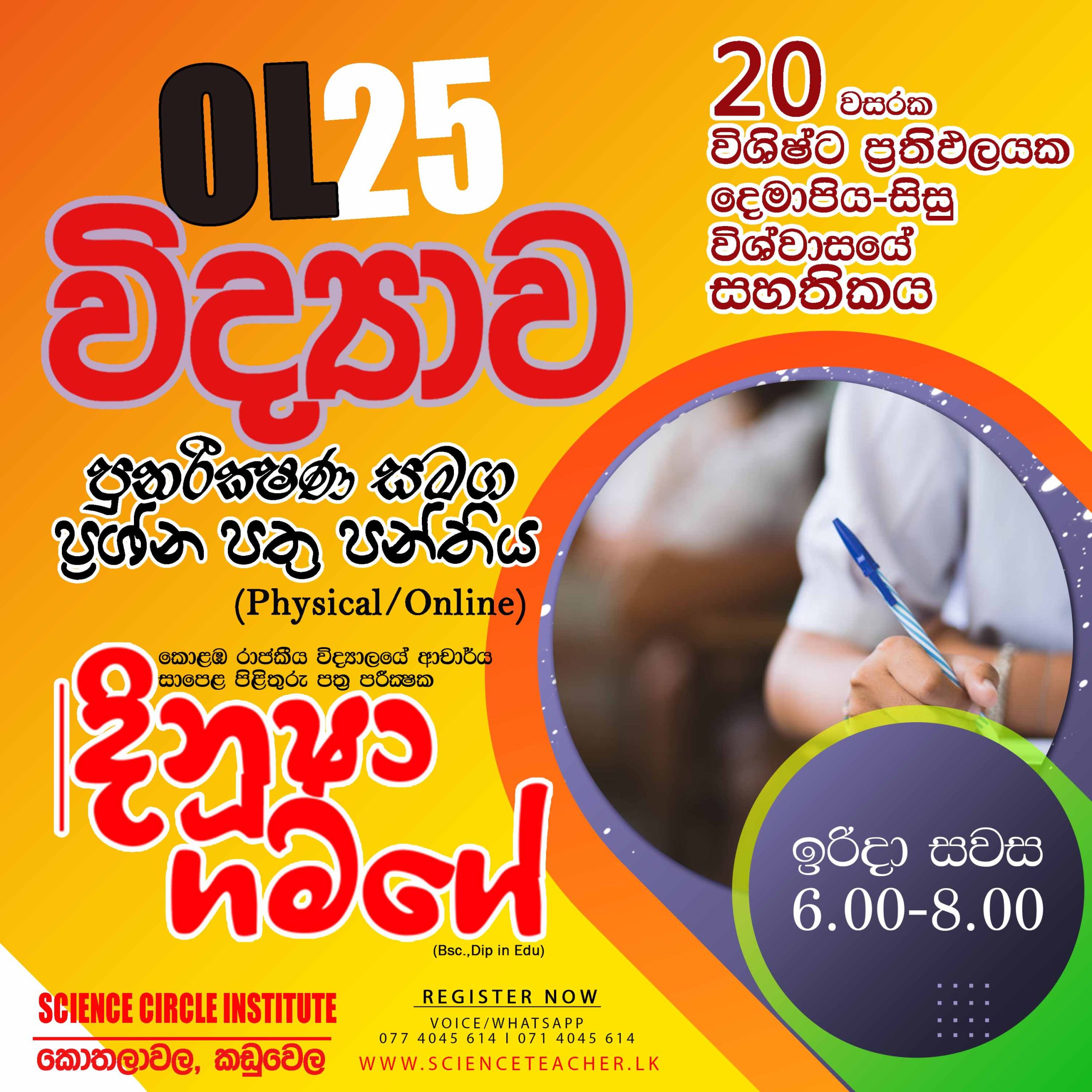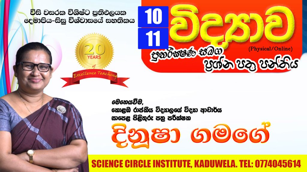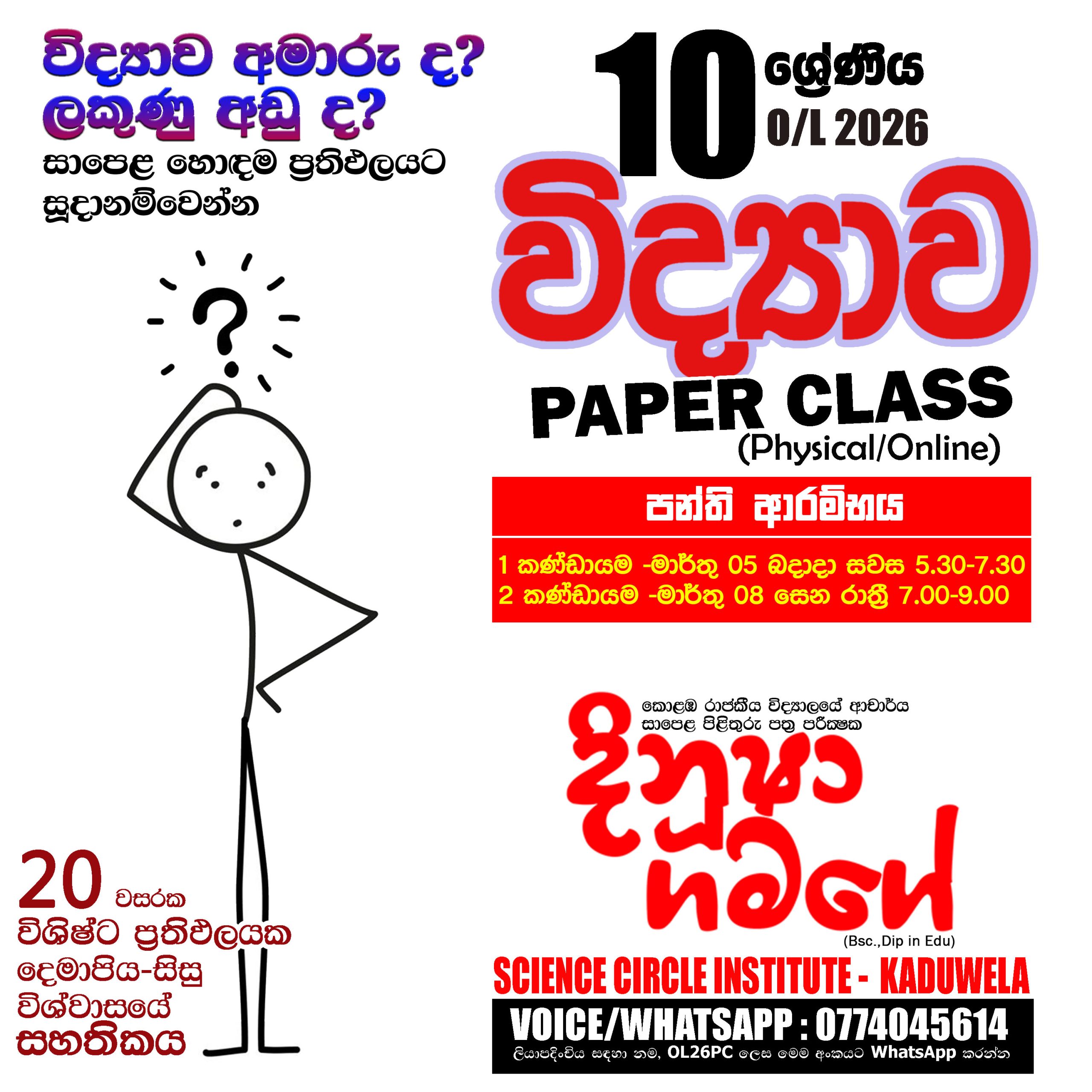 1) SCIENCE CIRCLE INSTITUTE (SCI-Kaduwela) ආයතනයේ Physical පන්ති පැවැත්වෙනු ඇත.