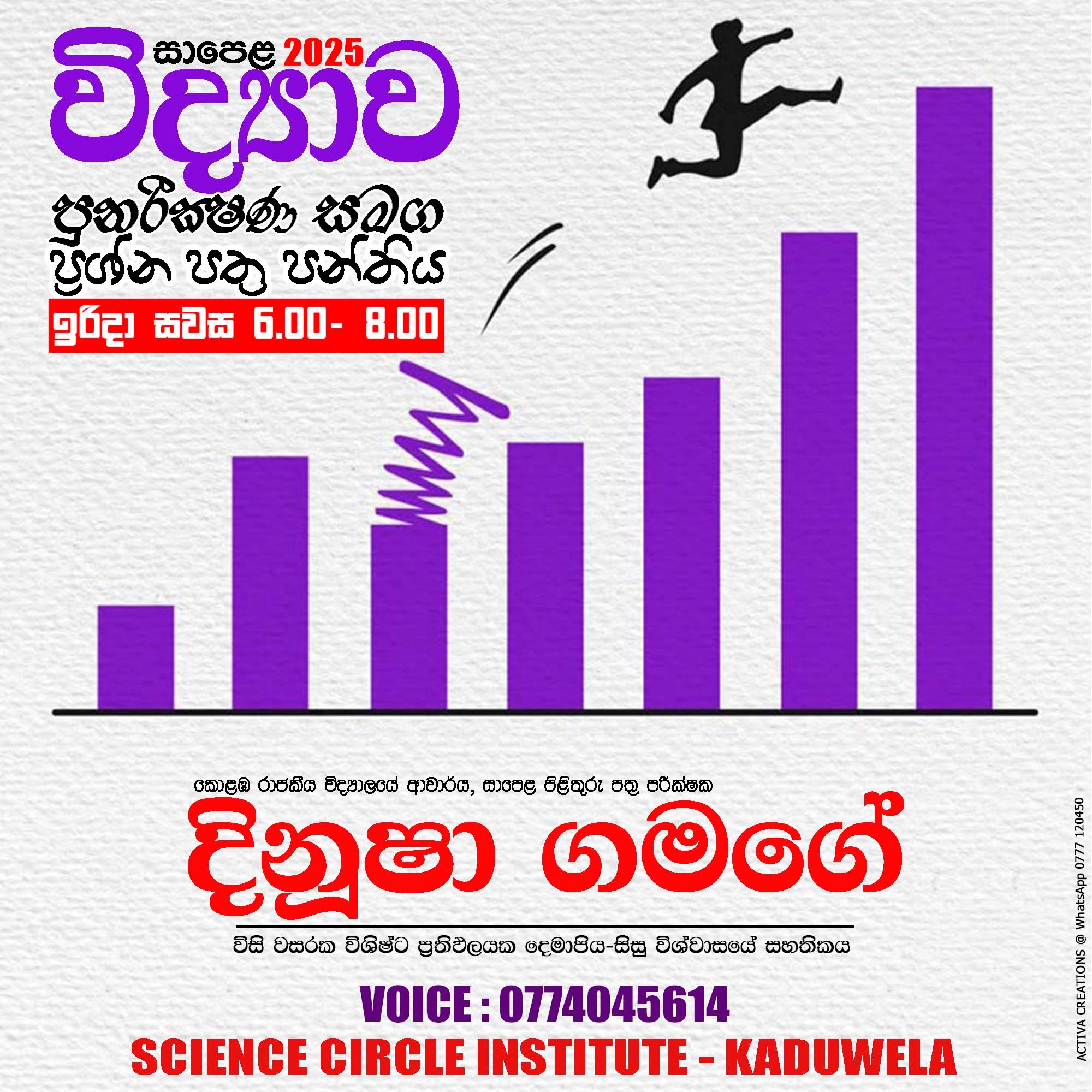 සියලූම විමසීම් සඳහා 077 4045614 / 071 4045614